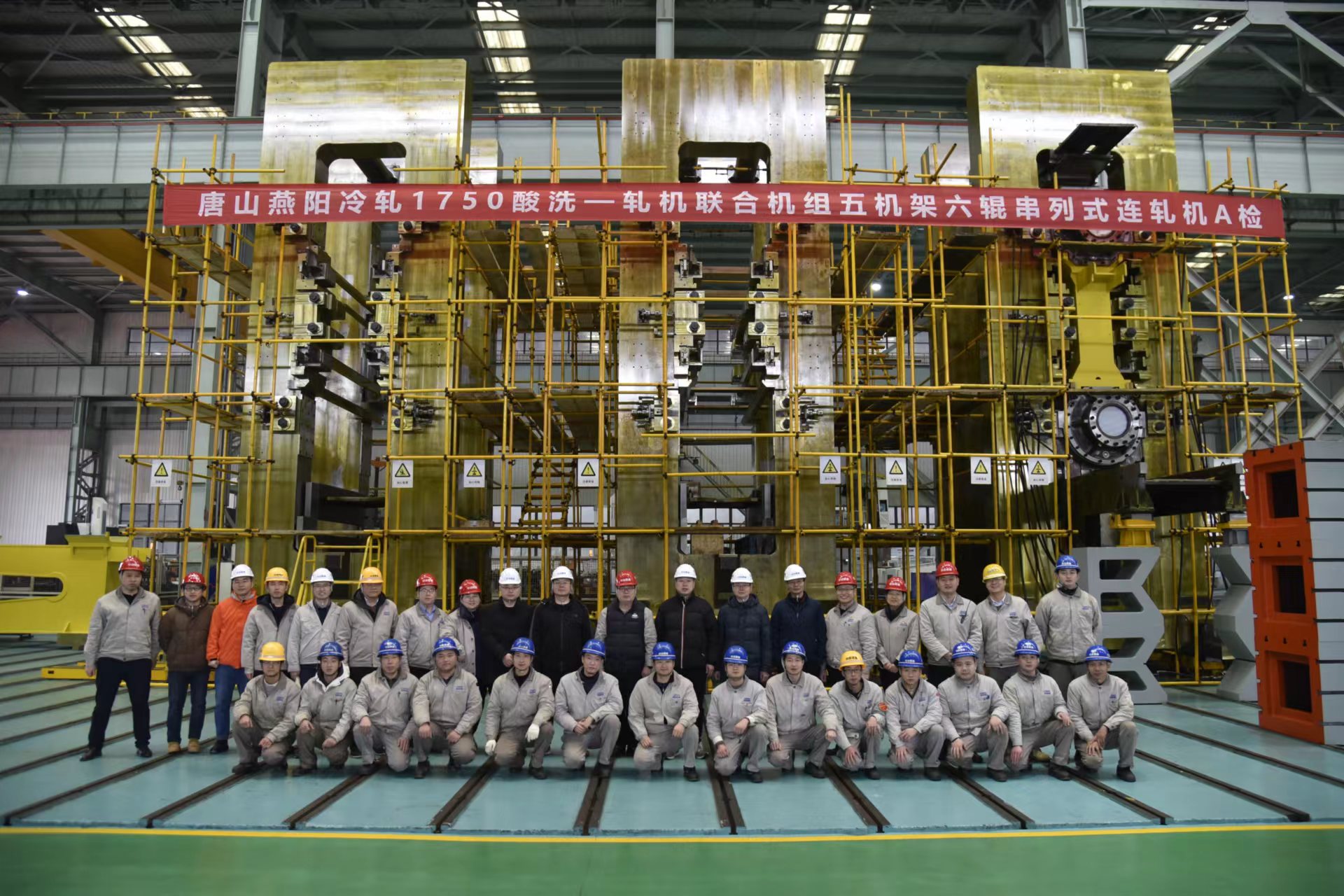 燕陽1750mm冷連軋機項目的軋機牌坊是公司制造的最大軋機牌坊,單體毛坯重量超110噸,加工和裝配只能在唯一擁有200噸起重行車的車間內進行,整個機組五個機架共10片牌坊。面對有限的生產場地、唯一的吊裝設備給項目的調度、裝配、發運等一系列工作提出的巨大挑戰,項目攻堅小隊提前周密部署,從毛坯進廠順序、加工進度節點、過程周轉場地,到裝配調試、解體運輸方案,將制造過程的運行精準控制到每一個環節。面對龐大的機械加工量以及高精度要求,黨員田成興帶領班組成員細化加工計劃,關注每一個加工節點,嚴控加工精度,帶頭加班加點,為產品高效率制造交付奠定了堅實基礎。